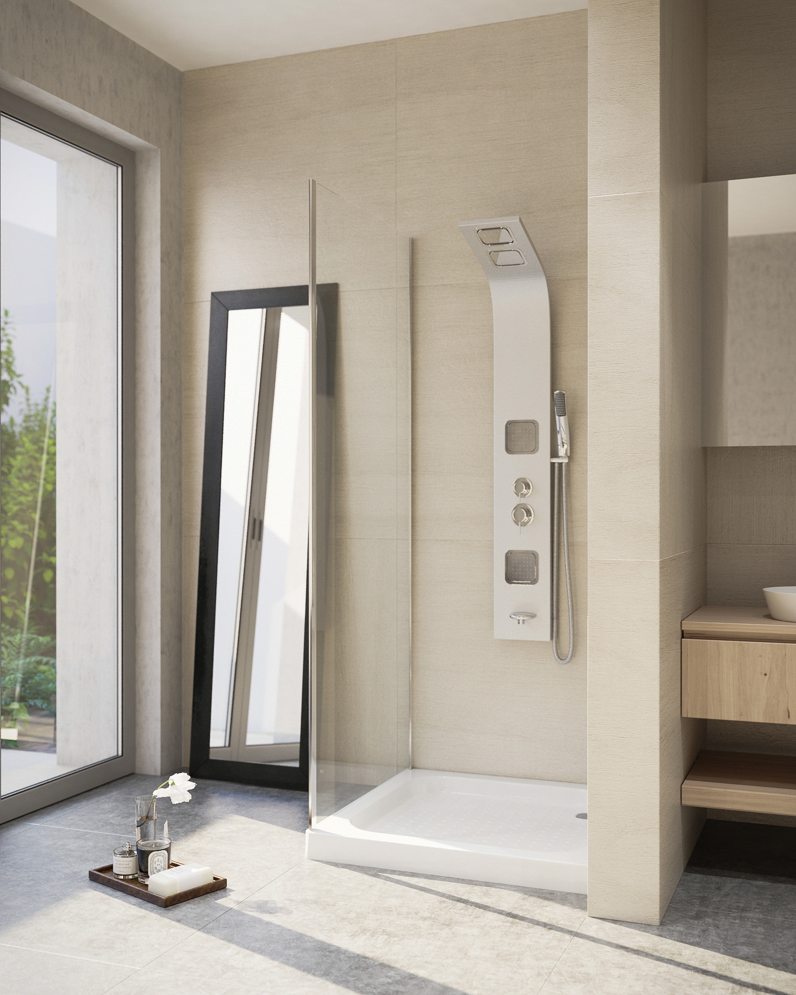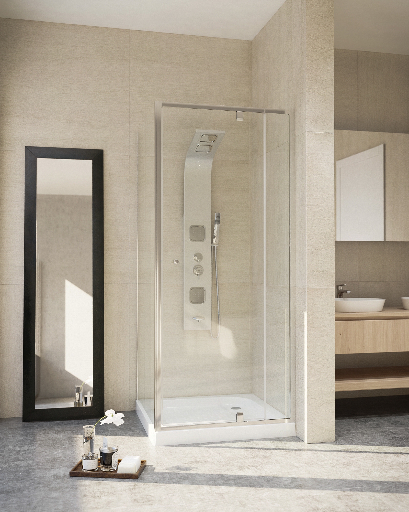 90cm széles, 185cm magas. 5mm vastag víztiszta biztonsági üveg. Polírozott, alumínium profil. Jobbos-balos szerelhetőség. A termék a 22.011-es ajtóval való összeépítésre használható, L vagy U alakban egyaránt. Az oldalfal beépítési mérete: 87-89x185 cm